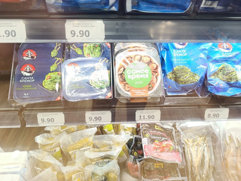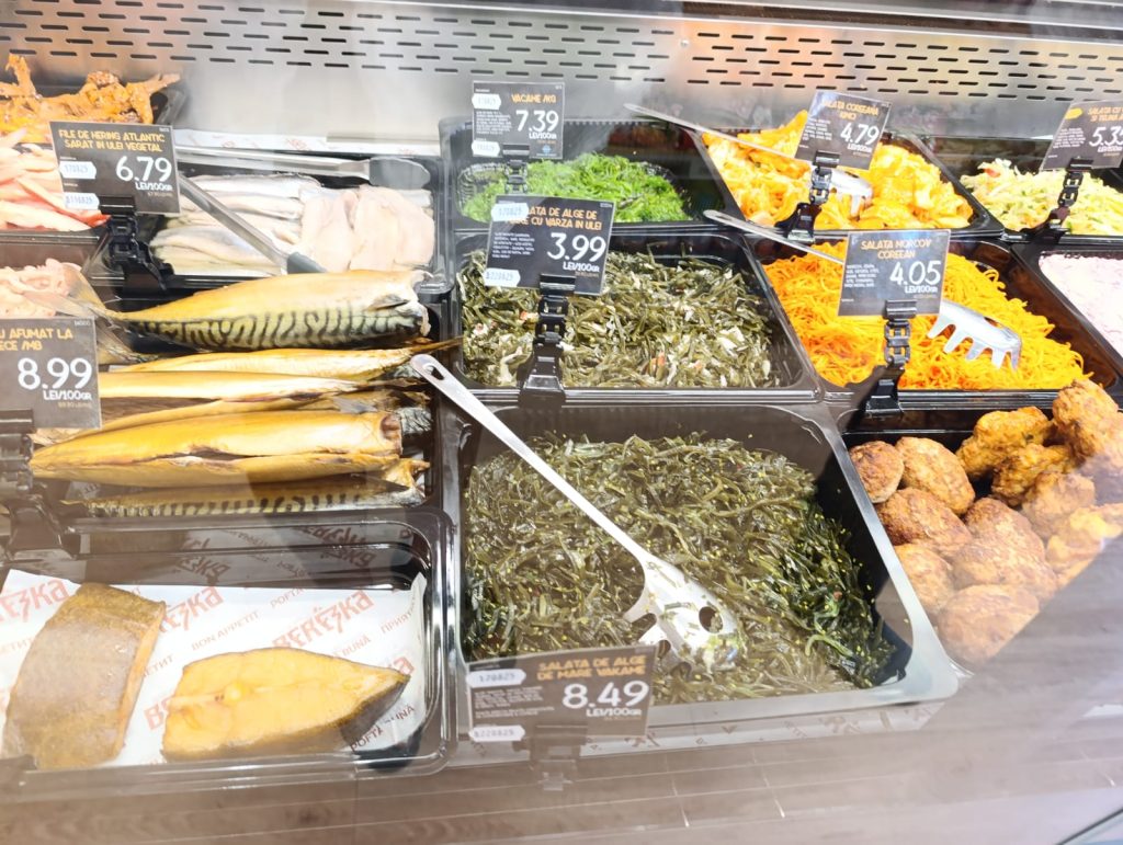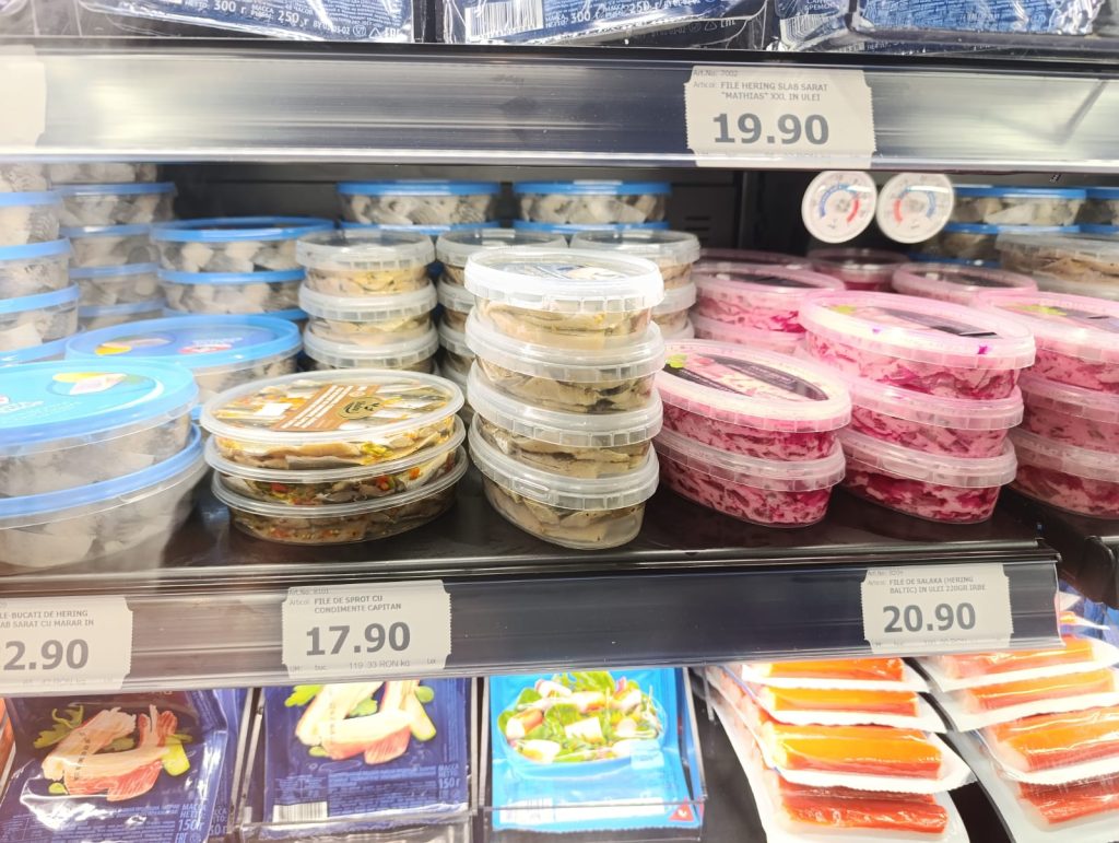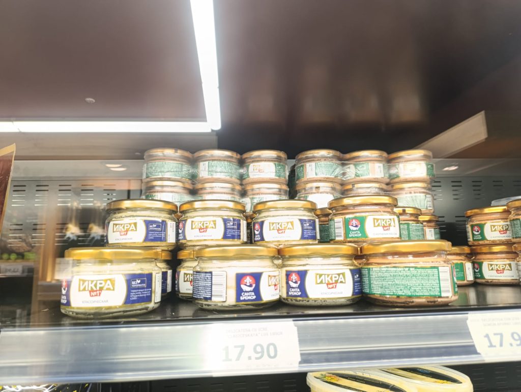 În magazin era foarte mult pește, de toate felurile: uscat, marinat, afumat, în conserve – sardine, în ulei – absolut tot ce vrei.Nu găsești doar icre negre, ci și icre roșii sau de crap.