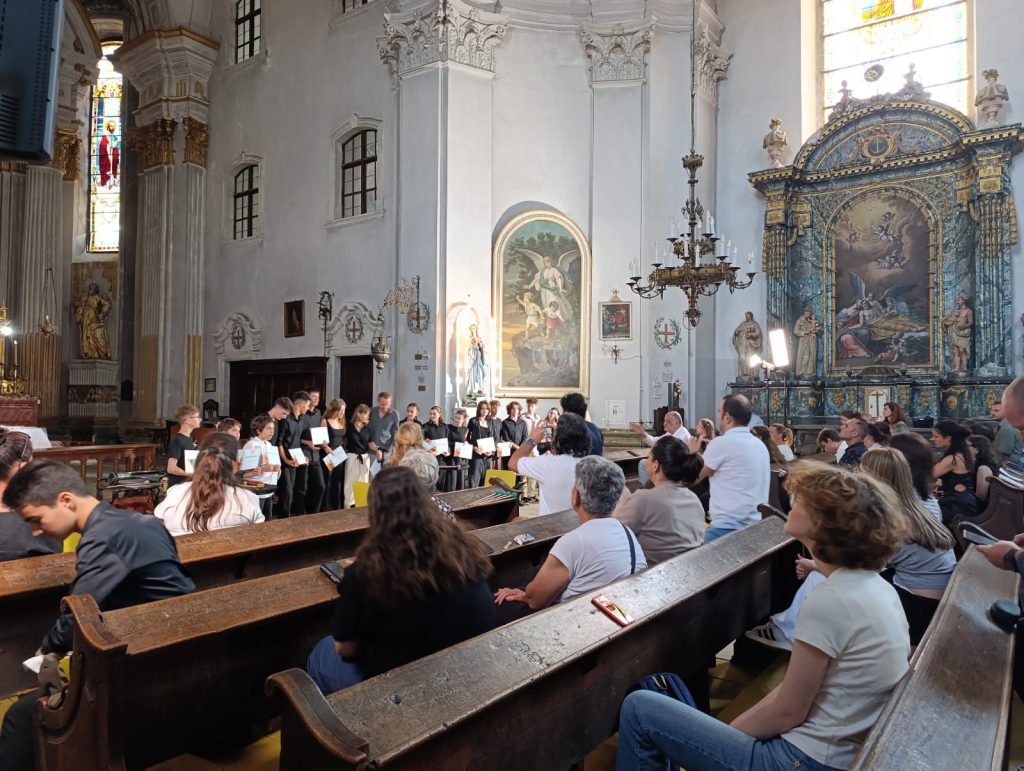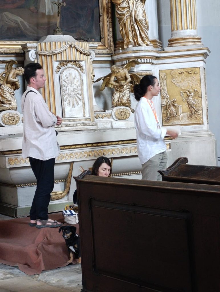 La intrarea în biserică, o doamnă asculta concertul, însoțită de patrupedul ei. Stăteau cuminți ascultând acordurile de chitară, alături de noi toți. Mă gândeam atunci?! Ce s-ar fi petrecut la ortodocși dacă cineva ar fi adus un cățel în curtea bisericii, darămite-n interiorul ei. Prin asta mi s-a arătat încă o dată deschiderea Ardealului către tot: cultură, spiritualitate, respect și iubire. O altă lume!!!