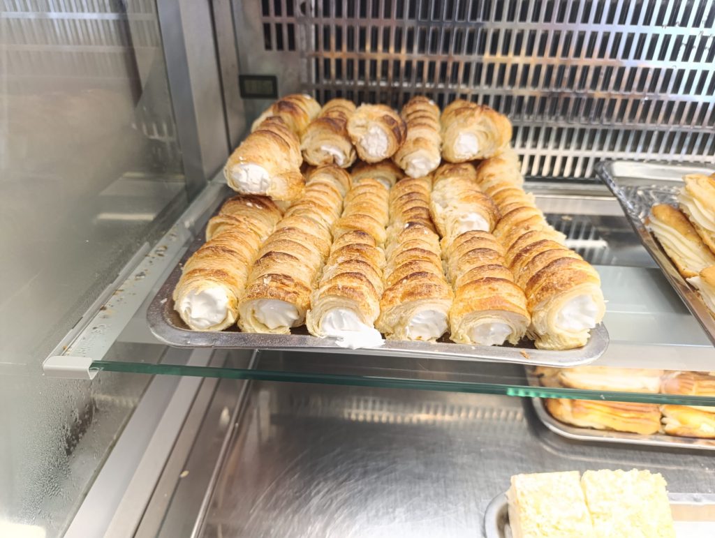 Cremșnit sau cremeș, prăjitura cu origine nemțească-austriacă, nu poate fi omis. Nu este printre preferatele mele, deoarece crema conține o aromă puternică, înțepătoare, pe care nu o deslușesc. În schimb, prefer aceeași prăjitură la pungă cu denumirea de Napoleon, așa cum se găsește și în Republica Modova.