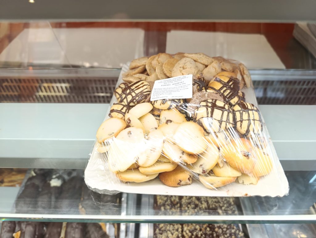 Cum zahărul declansează în creier eliberarea de dopamină, asociată cu plăcerea, am continuat să tot fac drumuri în interiorul patiseriei. A urmat o negresă, o pricomigdală, și o preambalată. Ei bine, dacă tot ne-am porcit, râzând de noi, dar cu un sentiment, să recunoaștem, de vină, ne-am gândit să nu așteptăm până la Crăciun cozonacul, ci să îi facem o probă. Pentru că seara urma să mergem în vizită la niște prieteni, am luat și un mic platou de fursecuri… de poftă!